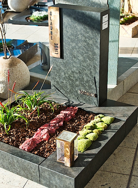Die Gestaltung des Grabmals und insbesondere die Grabbepflanzung ist dabei zum einen abhängig von der Beschaffenheit und Größe der Grabstätte, zum anderen von der Symbolsprache, die von dem Grabstein ausgehen soll. Die Grabsteine des Grabmalzentrums Böse folgen einer eigenen Symbolik, die bestimmte Emotionen ausdrückt. Sie tragen gefühlvolle Namen wie „Die Fügung“, „Unendlichkeit“ oder „Anziehung“. Daher sollte die Bepflanzung diesen Ausdruck unterstreichen und den Stein nicht verdecken. Dies erreicht man, wenn Art und Farbe der Pflanzen die Symbolik des Grabmals aufnehmen.